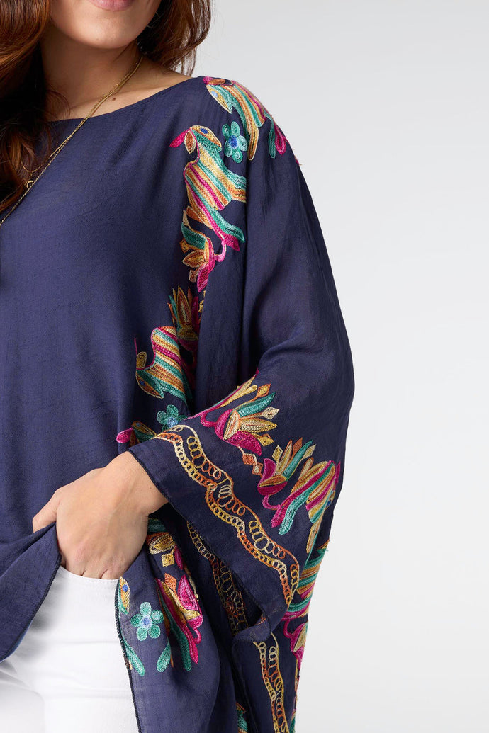 Stay chic and cozy with our Nia Poncho featuring exquisite embroidery details. Whether you're running errands or meeting friends for brunch, this versatile piece will keep you looking effortlessly stylish. The soft fabric drapes beautifully, making it a must-have for any fashionista.
