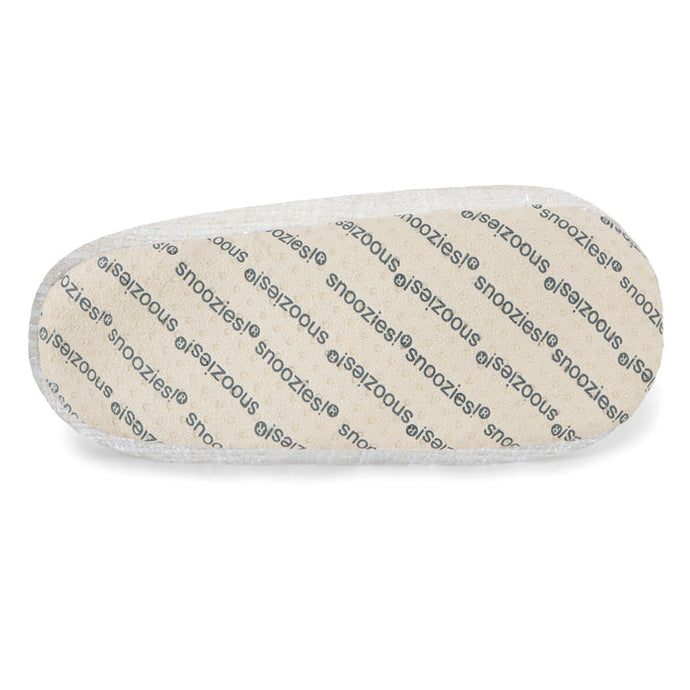 Snoozies are not a sock and not a slipper, it is a cross between the two, making them a foot covering or Footie! Made of 100% Polyester. Snoozies include soft fleece lining inside, overall print on the outside, and a non-skid sole on the bottom.