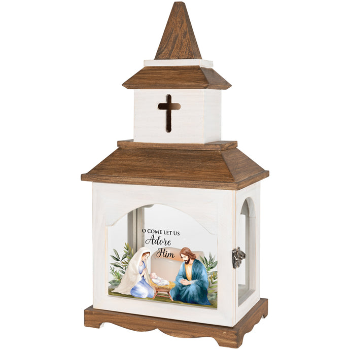 These lanterns are made from quality wood and UV printed glass artwork with sentiment. The flameless LED candle features a built in automatic timer; 6 hours ON/18 hours OFF. 3AAA batteries are not included. These lanterns are intended for indoor use only.
