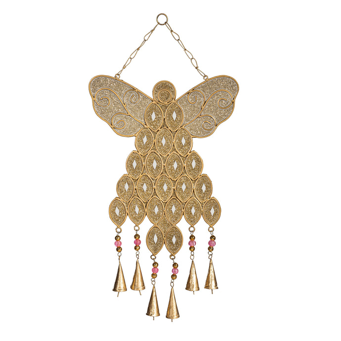 Season to Sparkle Wind Chime, Metal Gold Angel
