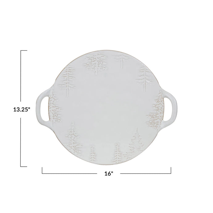 Debossed Stoneware Tray/Platter w/ Trees & Handles (Each One Will Vary)