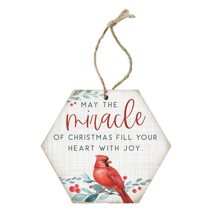 Additional Info: Christmas Themed  This delightful hanging ornament encapsulates the warmth and joy of the Christmas season, making it a perfect addition to your festive décor or a heartfelt gift. - premium wood, cardinal bird, festive joy, twine hanging, designed and printed in the USA, wooden decoration, holiday cheer, unique variations, Christmas miracle, nature-inspired