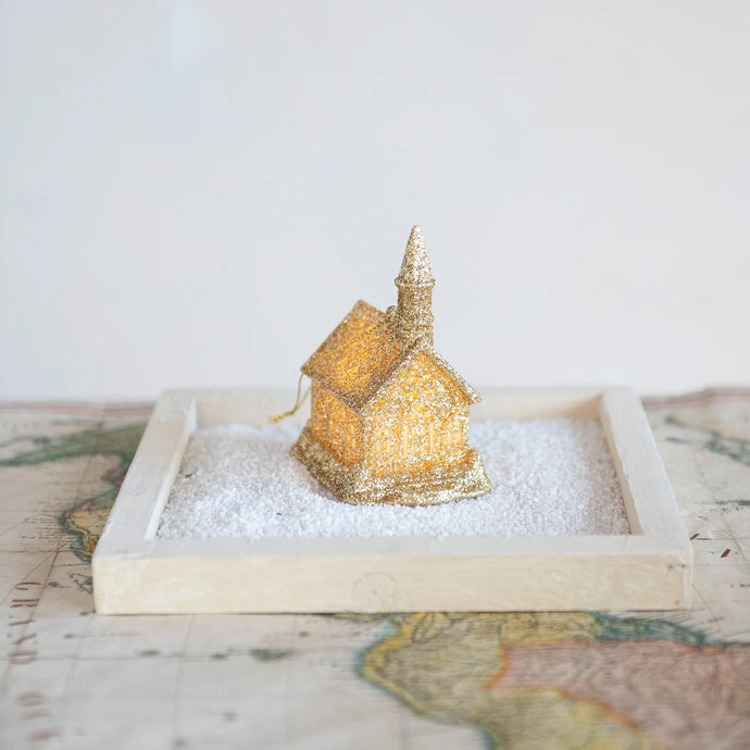 Plastic Church Ornament with LED Light & Glitter, Gold Finish