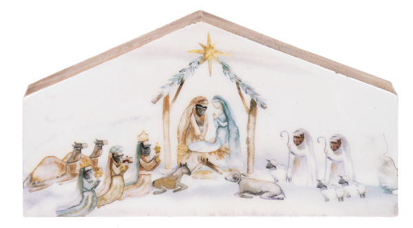 Present a serene holiday accent with the Watercolor Nativity Scene Block. Crafted from rich mango wood and finished with epoxy, it measures 12" wide, 1 1/4" deep, and 6 1/2" high. The refined watercolor design captures the nativity with subtle elegance, bringing a sophisticated and peaceful presence to your seasonal décor.