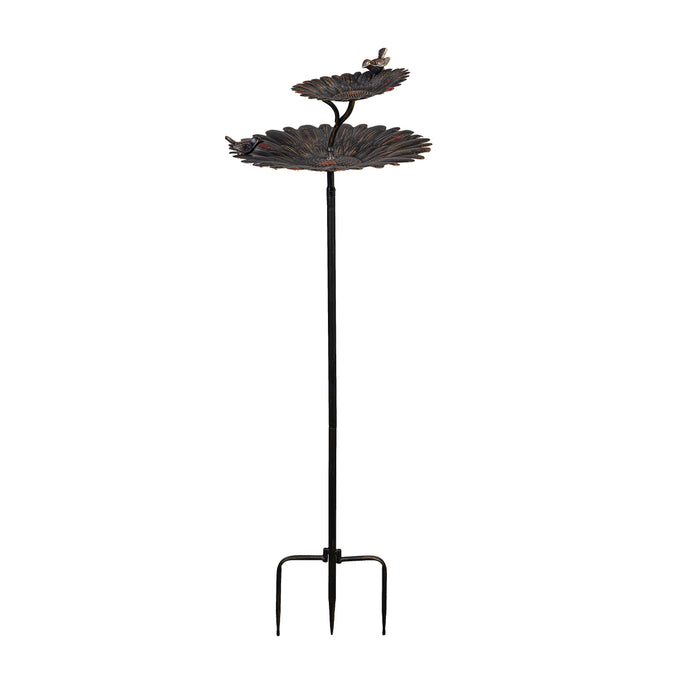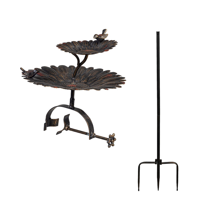 2-in-1 Sunflower Metal Birdbath and Feeder with Mounting Attachment and Stake, 48
