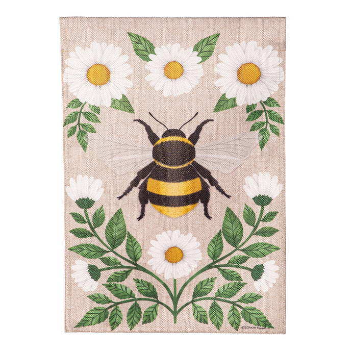 This eye-catching flag adds an extra special touch to any garden or outdoor space. With its floral bee design, this flag welcomes friends and family in beautiful style. It’s made of medium-weight, soft burlap fabric that's made from recycled plastic that has the look and feel of real burlap. Artwork is heat transferred onto both sides of the textured fabric to create a natural, crafted look. The flag is durable and weatherproof and will not fade or fray after continued display. This flag features a sleeve for use with any standard flagpole or stand, sold separately.