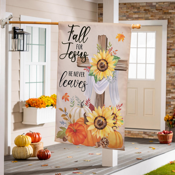 Give any garden or outdoor space an extra special touch with this stunning flag. With its cozy, seasonal design, this flag welcomes friends and family to the home in style. Flag is crafted of medium-weight suede fabric made from recycled plastic that provides a soft and durable texture. Artwork is heat transferred onto the sun-blocking material so that it is easily viewed from both sides. The weatherproof flag will not fray or fade with continued outdoor use. This flag features a sleeve for use with any standard flagpole or stand, sold separately.