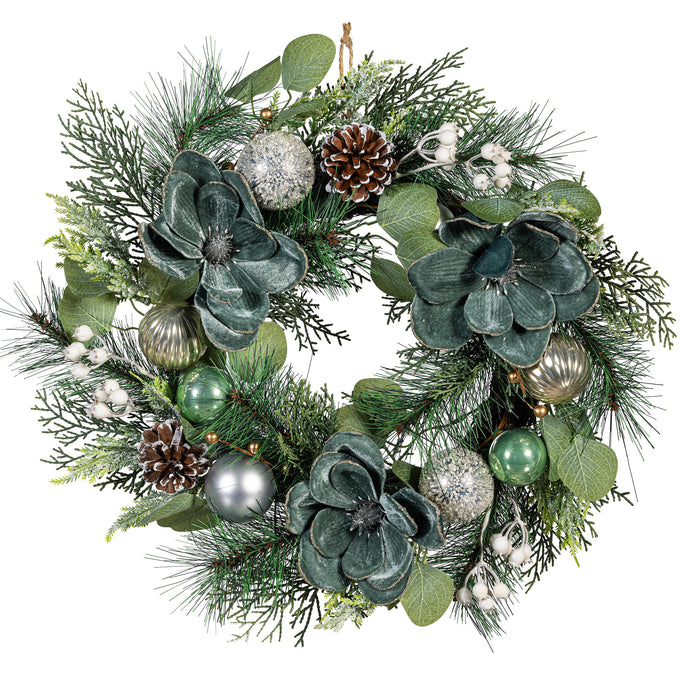 Shades of Green Wreath Artificial with Ornaments, 20"H