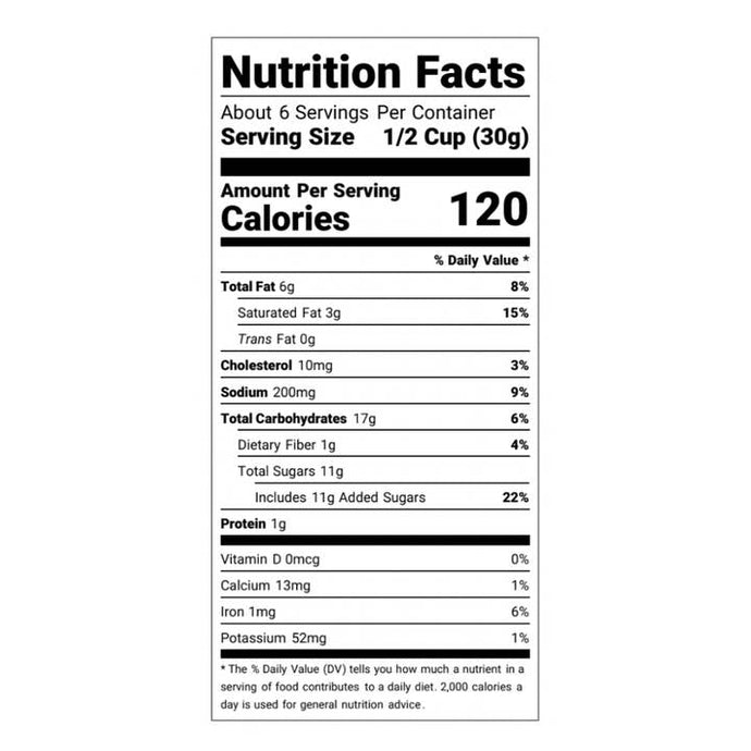 INGREDIENTS: Brown Sugar, Non-GMO Popcorn, Non- GMO Corn Syrup (Corn Syrup, Salt, Vanilla Extract [Vanilla Beans, Water, Ethyl Alcohol]), Butter (Cream, Natural Flavor), Pecans, Almonds , Molasses , Dark Chocolate (Sugar, Cacao, Cacao Butter), Sea Salt, RBD Coconut Oil, Sunflower Oil, Sunflower Lecithin.