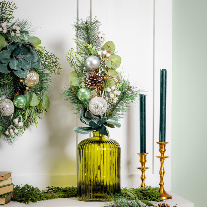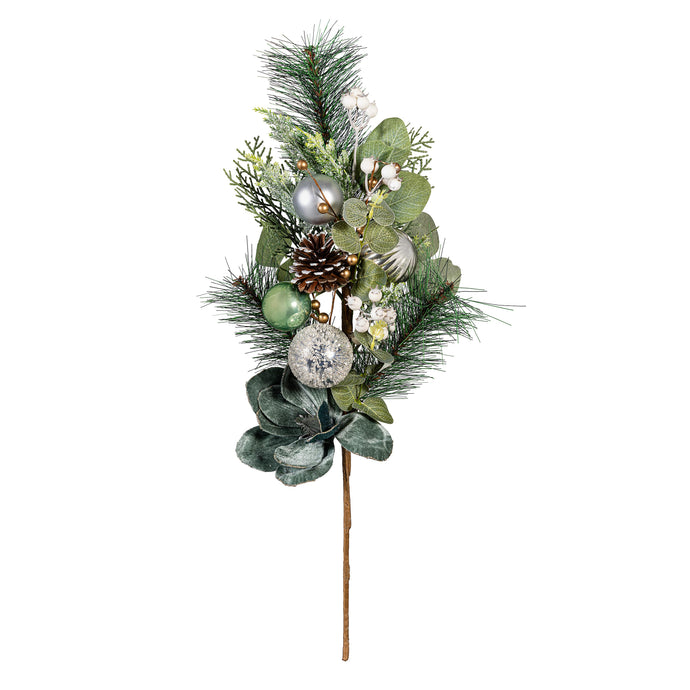 Shades of Green Stem Artificial with Ornaments, 25"H