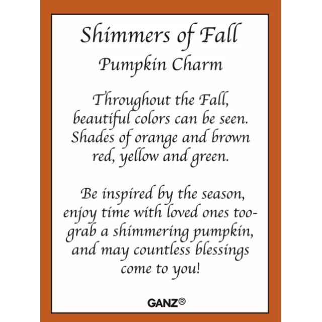 Celebrate the beauty of the season with the Ganz Shimmers of Fall Pumpkin Pocket Token, a small but meaningful reminder of all the warmth, gratitude, and golden moments fall brings. This charming pocket-sized pumpkin features a cheerful hue with a shimmering finish, perfect for carrying a little autumn magic wherever you go.