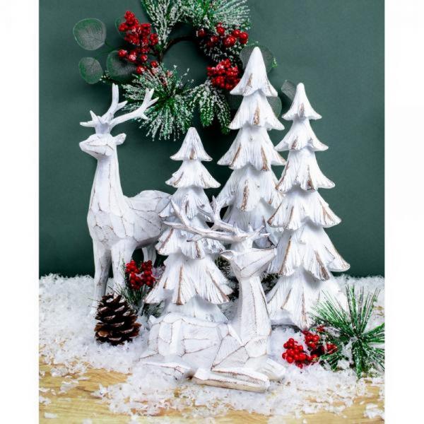Add natural charm to your holiday décor with our Winter Woods Collection. Beatifully sculpted resin is finished in a rubbed white. These stylish figures add an understated elegance to any sideboard, mantel or table top.