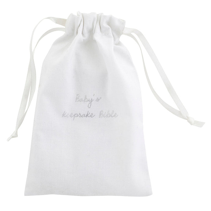 Baby's Keepsake Bible is one of a kind. Comes with a cinch bag to cherish as a keepsake for all time. This comes with a mini King James Bible.