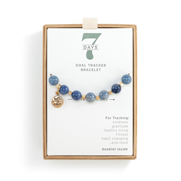 Whether it's living a healthier life, changing a habit or sharing kindness, the 7 Days Tracker Bracelet - Indigo and Gold helps you believe, track and achieve your goals, one day at a time.