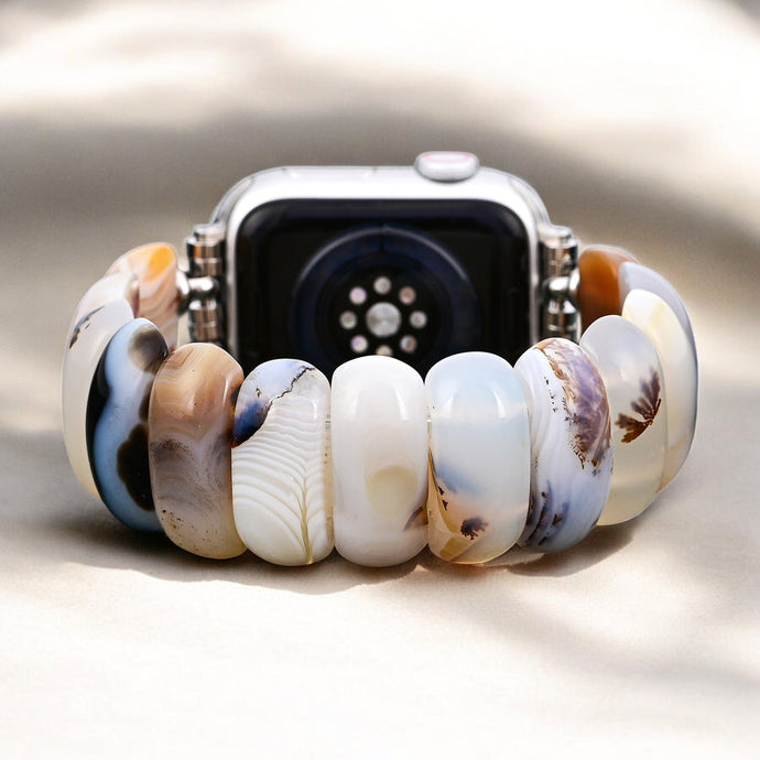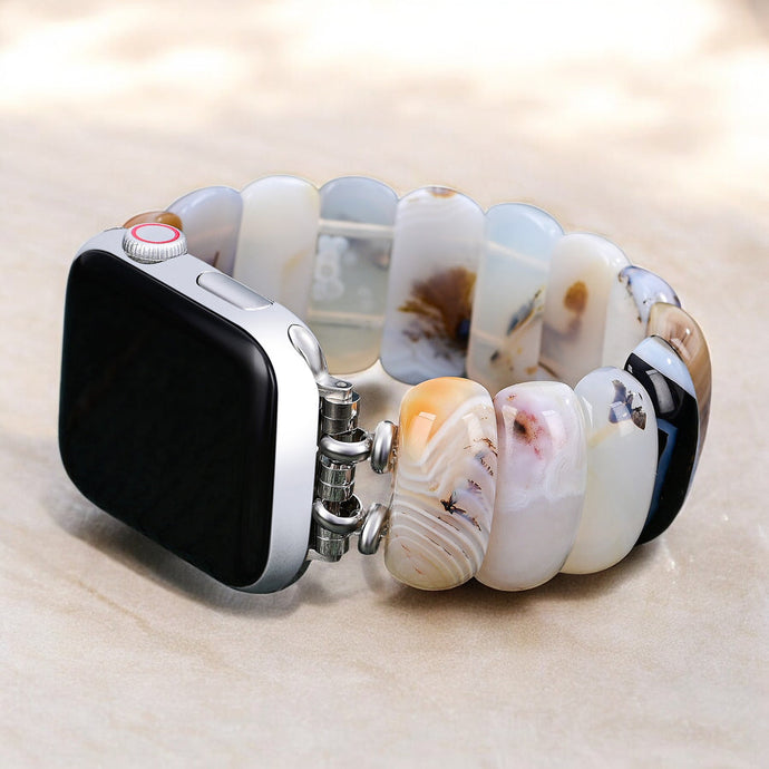Embrace serene elegance with the Ivory Dune Agate Stretch Apple Watch Strap, featuring soothing beige and cream-toned stones. Known for its grounding properties, Agate promotes balance, emotional stability, and inner strength.