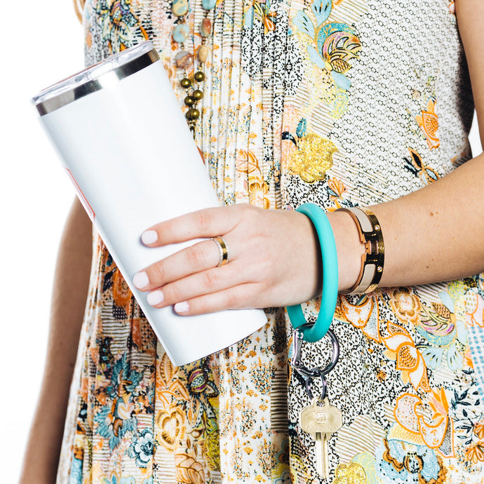 Crafted from durable silicone, this key ring is designed to maintain its shape and sleek appearance over time. The inner core ensures that it stays firm and strong, while the signature patented locking clasp provides a secure and easy way to attach your keys, phone and wallet. Wear it comfortably on your wrist or forearm for hands-free convenience throughout the day.