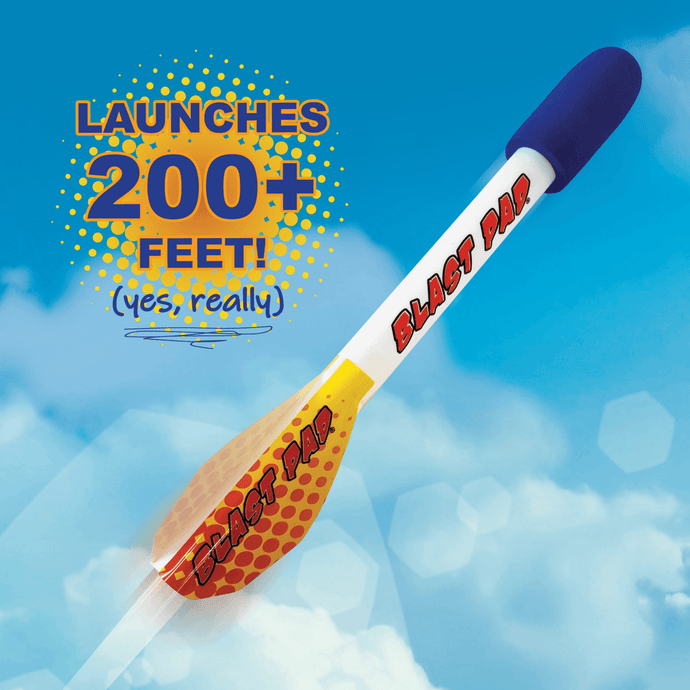Our latest design can launch a rocket over 200 feet - that's farther than your little brother can throw a tantrum! No bows required, just stomp on the durable BlastPad® and watch as your rocket soars into the sky. See just how far this long range airstrike BlastPad® can send your missiles!