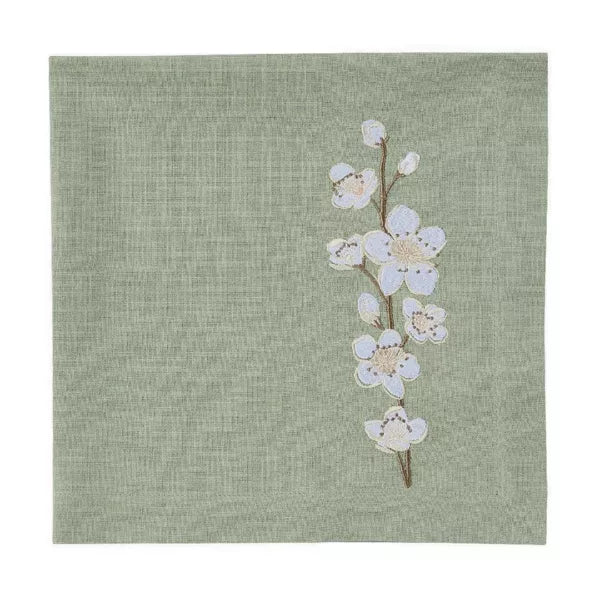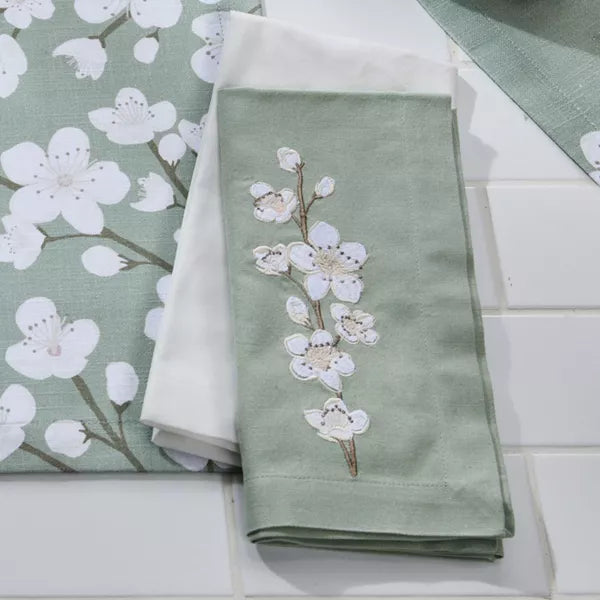 Enhance everyday and spring dining room decor with the beautiful green and floral design of this reusable nature cloth napkin. The embroidered cherry blossoms and their calming green backdrop introduce elegant country farmhouse elements to your dining space. They are perfect to add functionality and a decorative touch that will flawlessly complete any table decor throughout the year. Made of premium cotton material for a soft and ultra-absorbent tool to utilize during meal settings.