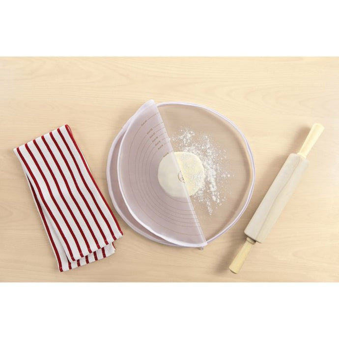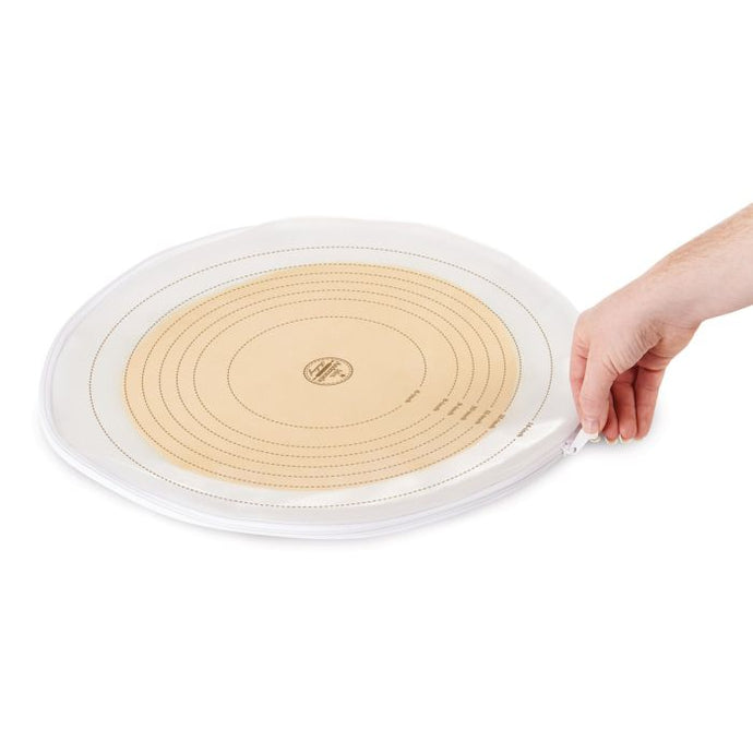 - Size guides help roll precise 6, 8, 9, 10, 11, 12 and 14-inch dough rounds without the guesswork; transparent material displays contents clearly